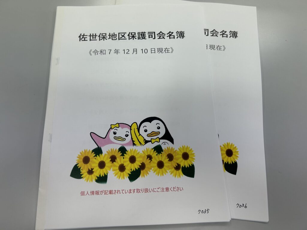 行事紹介 ホーム » 行事紹介 » 令和7年12月10日現在佐世保地区保護司会名簿が完成しました。 令和7年12月10日現在佐世保地区保護司会名簿が完成しました。 例年は、3期研修会の時にお渡ししていましたが、今年度より、必要な方はサポートセンターでお渡しします。 行事紹介一覧
